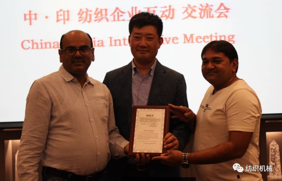 活動(dòng)現(xiàn)場(chǎng),為表彰印度代理Kedia Sandip先生在過(guò)去為海佳產(chǎn)品、技術(shù)推廣所做的努力和成績(jī),海佳授權(quán)Go Tex Machineries 公司為青島海佳機(jī)械有限公司印度市場(chǎng)總代理以及蘇拉特地區(qū)獨(dú)家代理,授權(quán)有效期2017年5月~2020年5月。海佳董事長(zhǎng)王安儉為Kedia Sandip及其合伙人KukadiyaGhanshyam Bhai Jivray Bhai頒發(fā)授權(quán)證書(shū)。